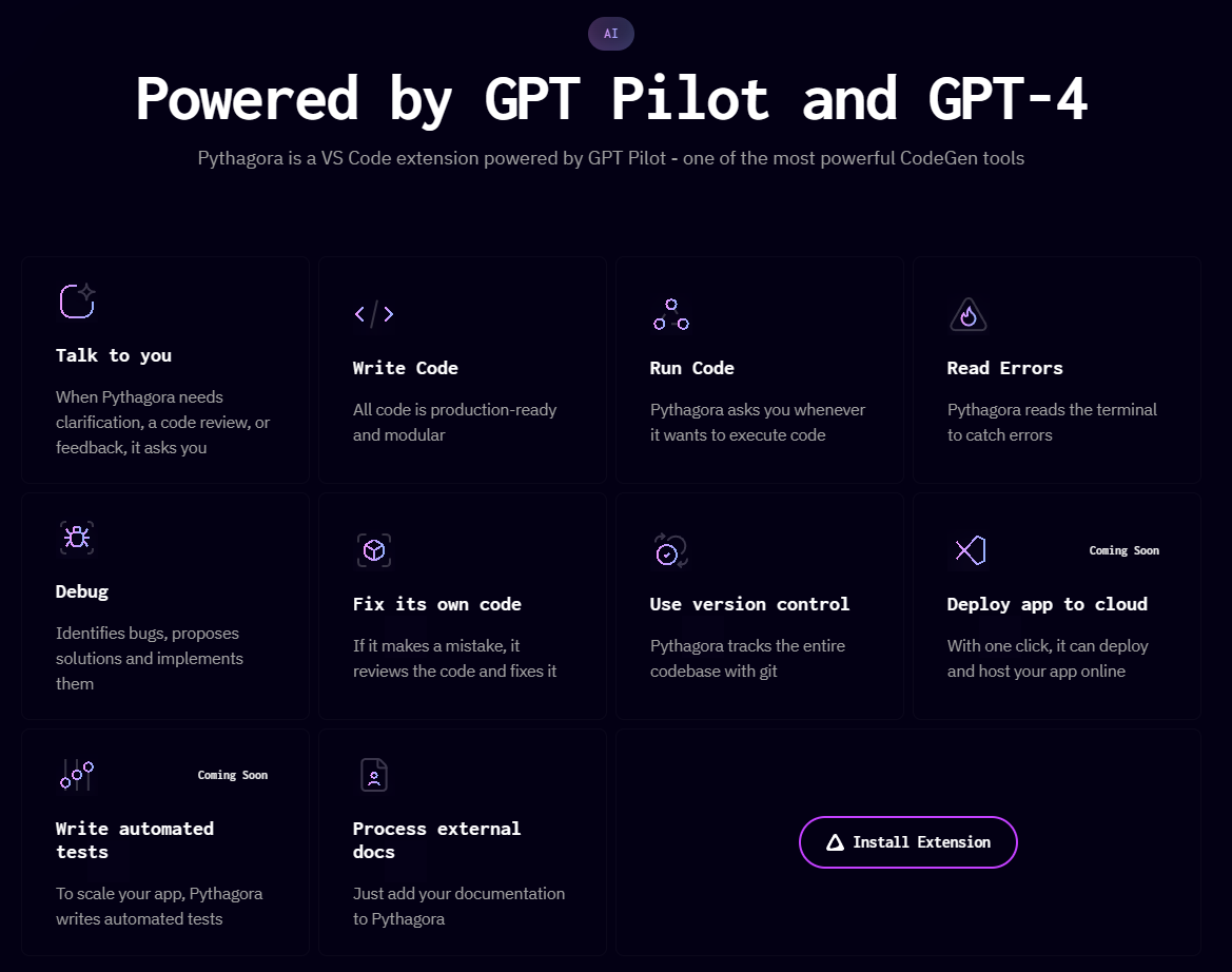 As an extension of the widely recognized GPT Pilot, which boasts over 22,000 Github stars, Pythagora streamlines the app creation process. You begin by describing your desired app, and through a series of questions, Pythagora drafts detailed specifications. It then codes, iteratively refining based on your testing feedback, until the app is completed and the code is committed. This approach ensures a seamless development process, efficiently turning ideas into fully functional apps.